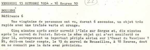 With Vaucluse Ufologie #3 and #6, we showed you how rich the day of October 14, 1954 was in observations. The next day is also rich, we have four observations throughout the Vaucluse: