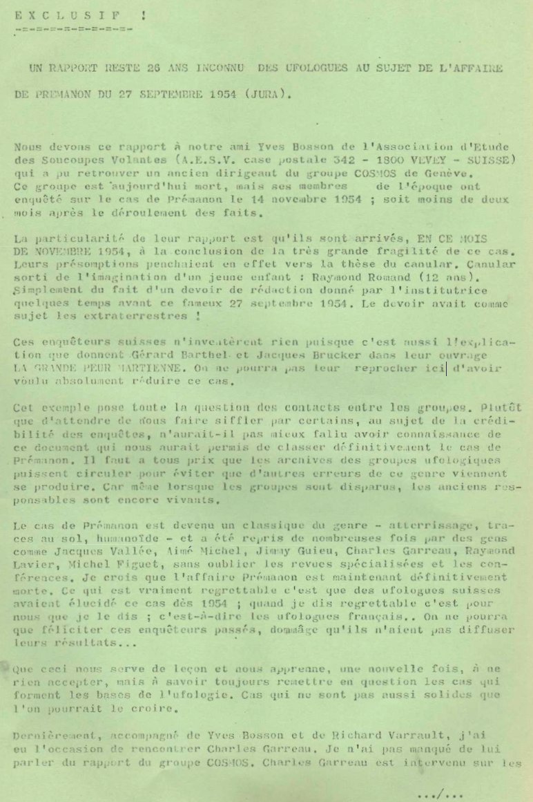 The ufologist also notes that the Prémanon case was also allegedly "explained" by Barthel and Brucker ("La grande peur martienne", Nouvelles Editions Rationalistes, Paris 1979, pp. 88-93), "but all their book is a big lie!"
