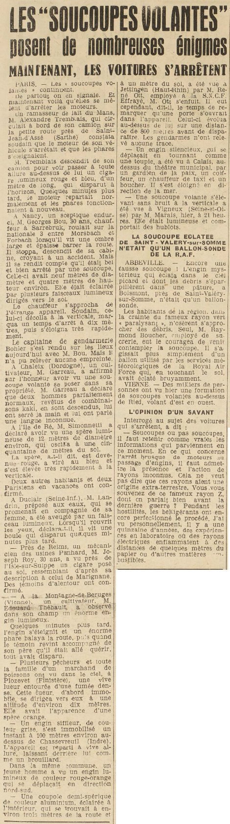 25. BEAUVOIR ...a mysterious craft flying at a rather slow pace. (Parisien Libéré - 9-10-54)