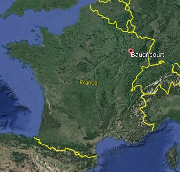 According to the catalog, this witness drove his truck on the road to Neufchâteau, his headlights gradually extinguished around Baudricourt.
