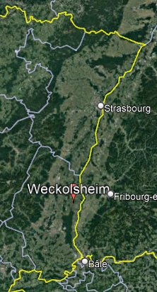 Location: County road lbis between Weckolsheim and Niederhergheim. (I.G.N. "Neuf-Brisach" map at 1/50 OOOth - sheet 37/19 Longitude 7 ° 30, latitude 48 ° or Michelin map n ° 87 Fold 8).
